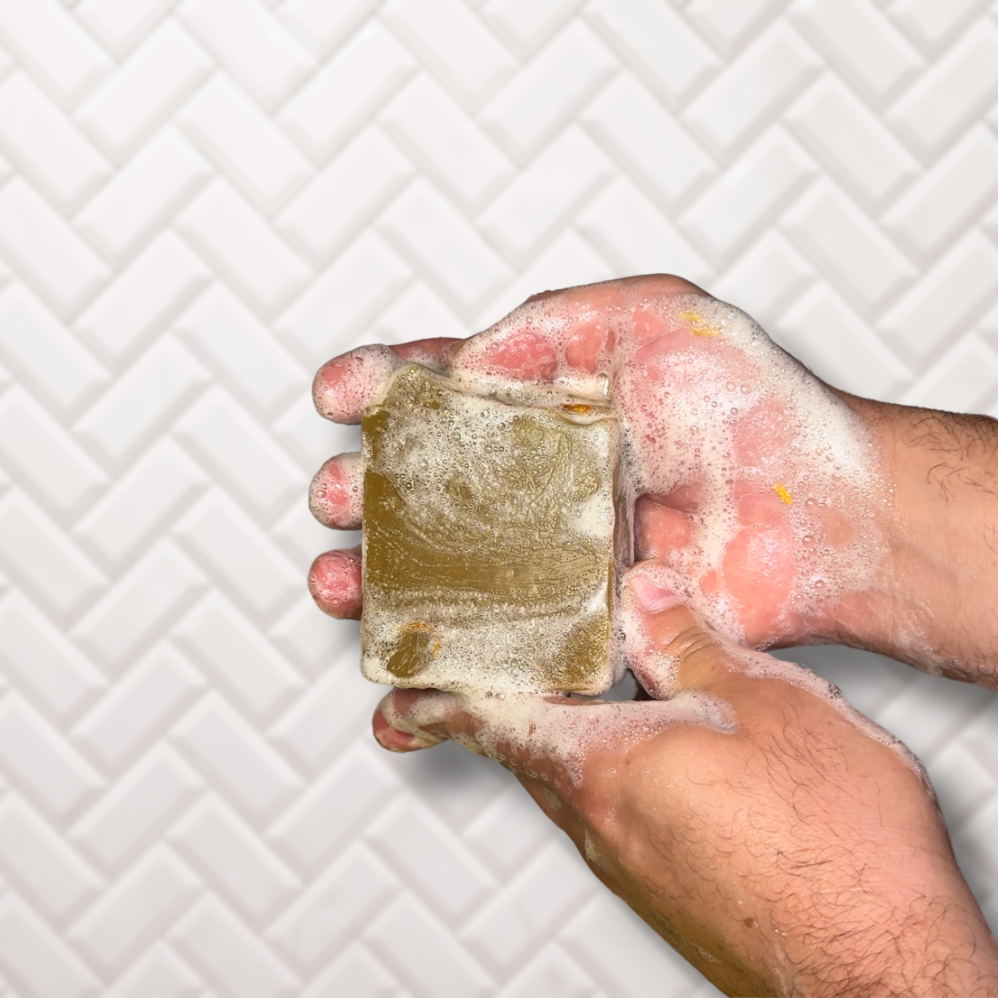 A refreshing, creamy bar made with soothing aloe, turmeric, and a bright blend of lavender and lemongrass.