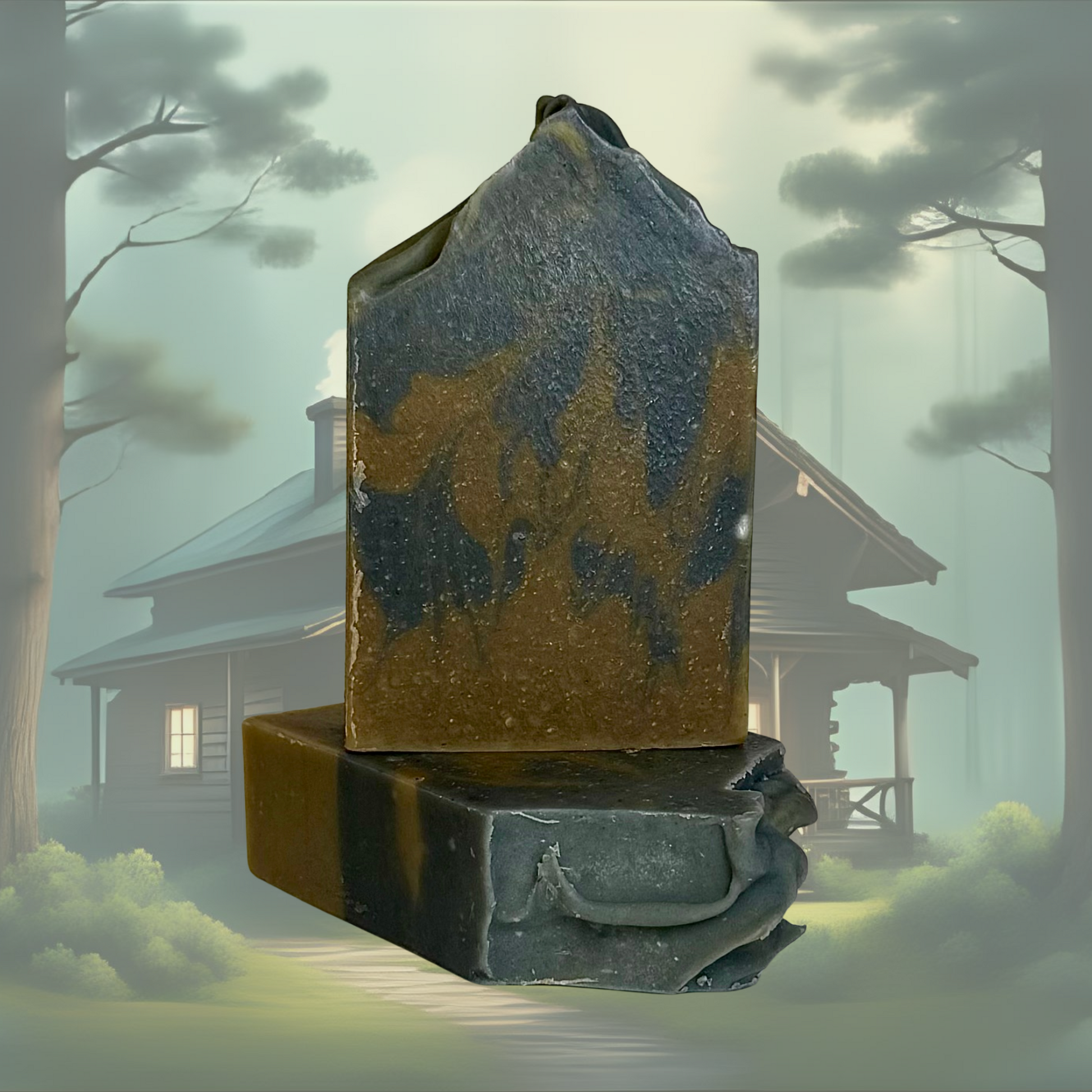 A grounding, earthy bar soap with aloe juice, detoxifying charcoal, and mineral-rich clays for a fresh forest cleanse.