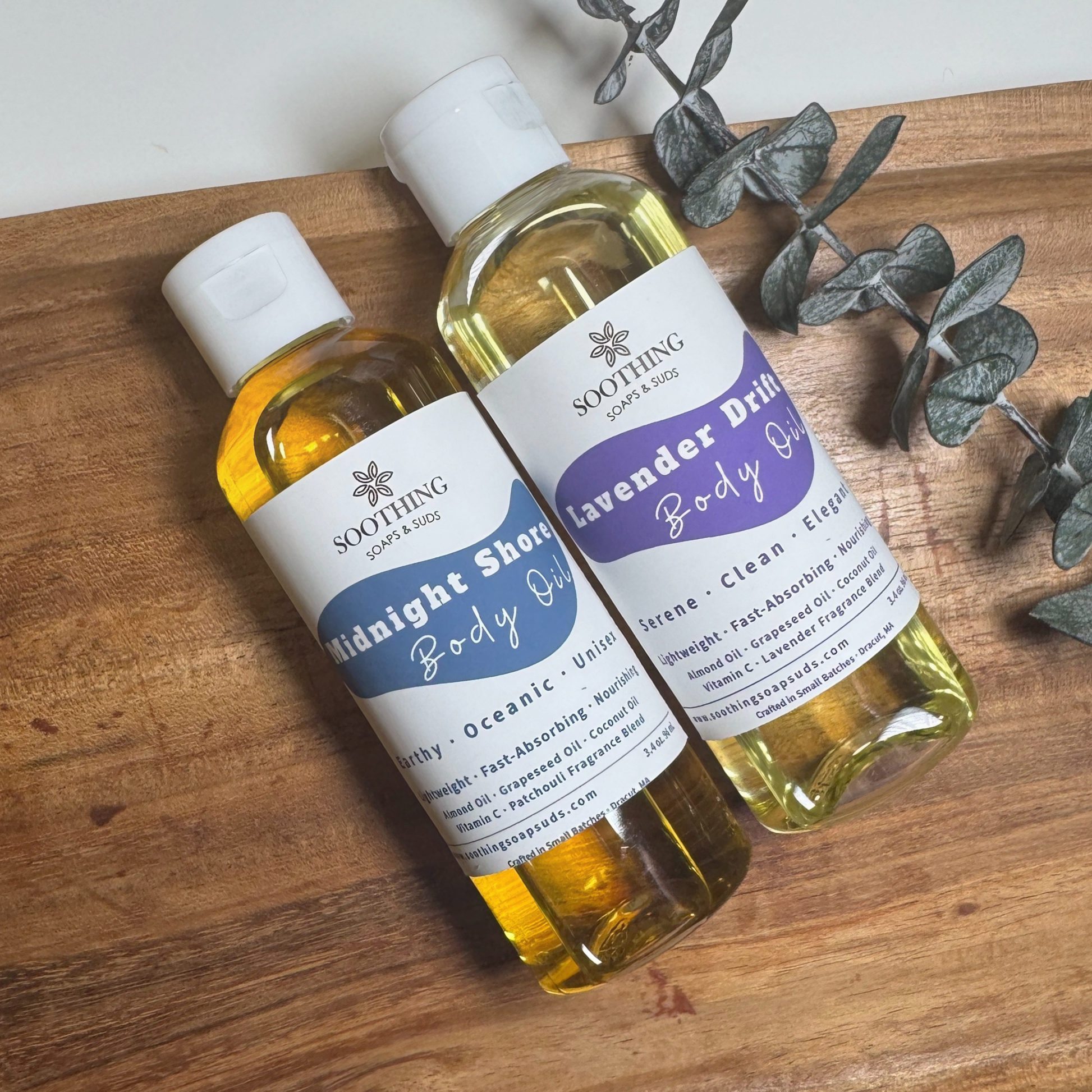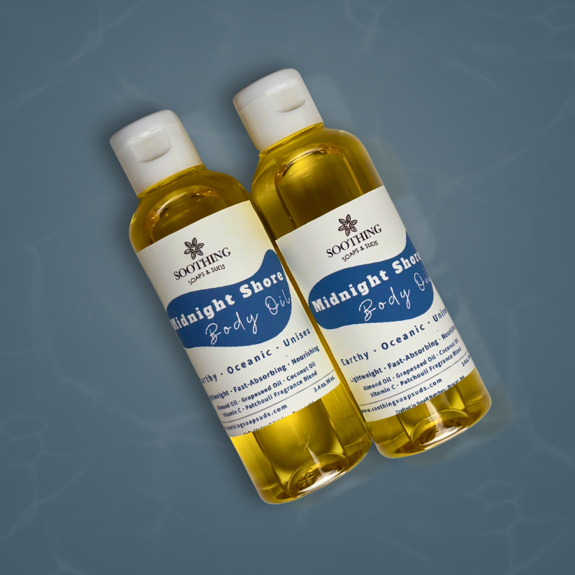 A refreshing, ocean-inspired body oil with earthy and citrus undertones — Midnight Shore is a lightweight, fast-absorbing blend designed to deeply hydrate, smooth, and leave a subtle coastal scent on your skin.
