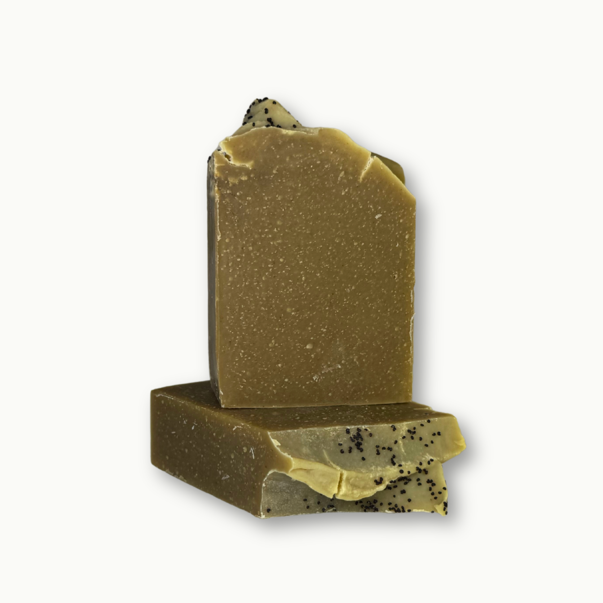 A creamy, minty-fresh bar enriched with avocado, oatmeal, and poppy seeds — handcrafted to soothe and refresh your skin.
