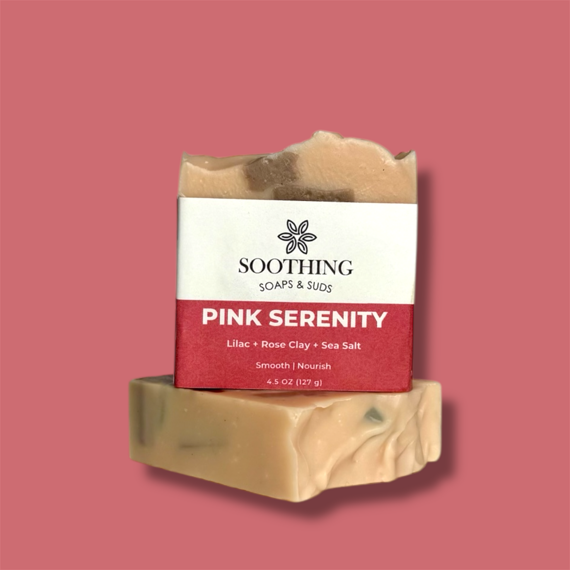 Elegant and softly floral, Pink Serenity is a gentle bar crafted with rose clay, sea salt, and a soothing bouquet of lavender, lilac, and rosemary. Its creamy lather pampers the skin, while its delicate scent brings moments of calm to your day.