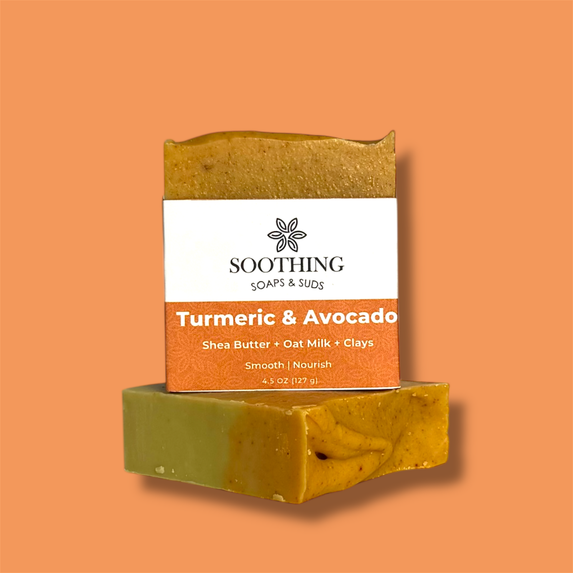 Golden, earthy, and beautifully balanced — Turmeric & Avocado is a skin-loving bar designed to gently smooth, deeply nourish, and leave a natural glow. Made with fresh avocado, oat milk, and mineral-rich clays, this bar cleanses while helping to calm and restore your skin’s natural barrier.